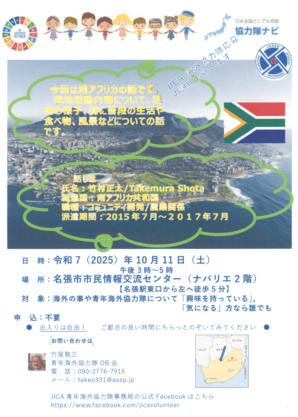 お問い合わせは:竹尾敬三 青年海外協力隊OB会
