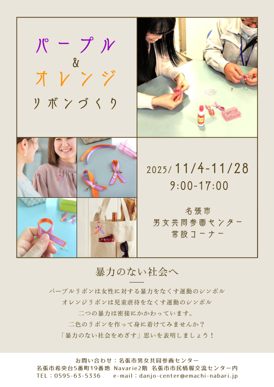 #女性への暴力をなくす運動 #児童虐待防止月間 #パープルリボン #オレンジリボン #パープル&オレンジリボン #暴力のない社会へ #無料ワークショップ #名張市男女共同参画センター #常設コーナー