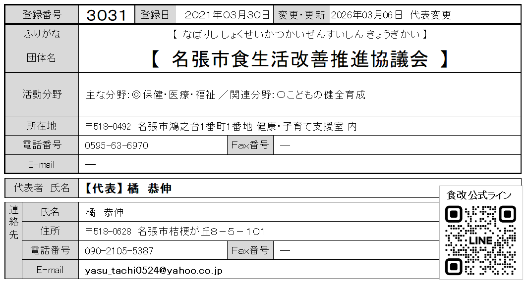 #公益活動 #名張市食生活改善推進協議会 #名張市保健センター #組合 #保健 #医療 #福祉 #こどもの健全育成 #健康寿命