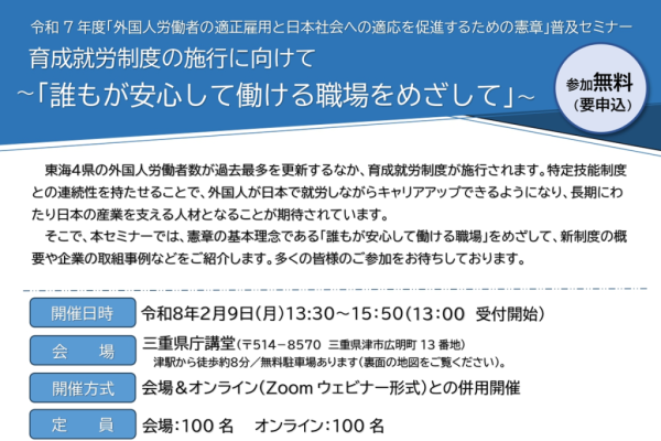 詳しくは->https://www.mienpo.net/news/260209/ 開催日時 令和8年2月9日(月)13:30~15:50 開催場所 三重県庁講堂 ※オンライン(Zoom ウェビナー形式)との併用開催 詳 […]