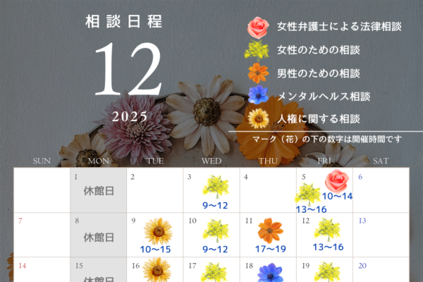 写真は12月の相談日程です。ご予約はお電話で受け付けております(月曜休館) #ひとりで悩んでいませんか #名張市男女共同参画センター #女性相談 #男性相談 #女性弁護士による法律相談 #メンタルヘルス相談 #三重県名張 […]