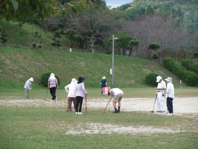10月1日(水)、梅が丘パークにて第28回梅の花老人会グラウンドゴルフ大会が、高齢者学級を兼ねて開催されました。当日は37名の参加者が集まり、秋晴れの空の下、和やかな雰囲気の中で行われました。