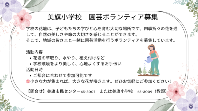 美旗小学校 園芸ボランティア募集