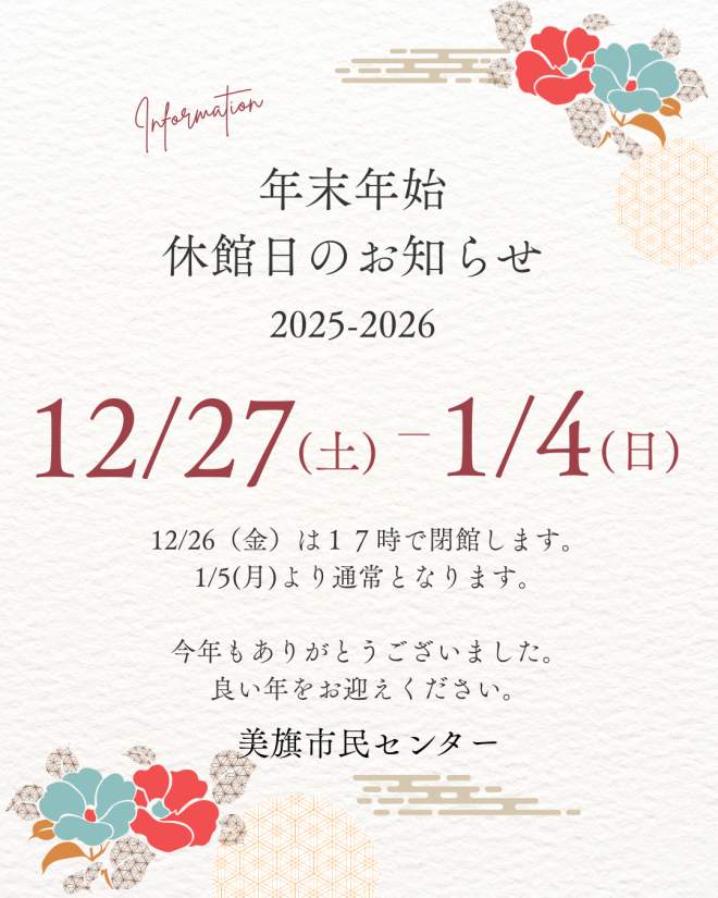 年末年始 休館日のお知らせ