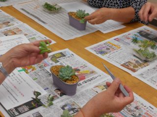 9月29日、初心者のための多肉植物寄せ植え講座を開催しました。募集開始するとまたたく間に定員に達し、4人増員しての開催となりました。