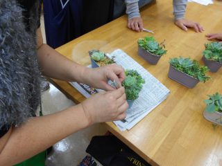 講師の𠮷川先生から寄せ植えのコツを教えていただいた後、まずは土に少量の水を与え、寄せ植えスタート!ぷっくり個性豊かな多肉植物たちをピンセットで優しくつまんで、配置に迷いながらおしゃれな容器にたくさん寄せ植えしました。