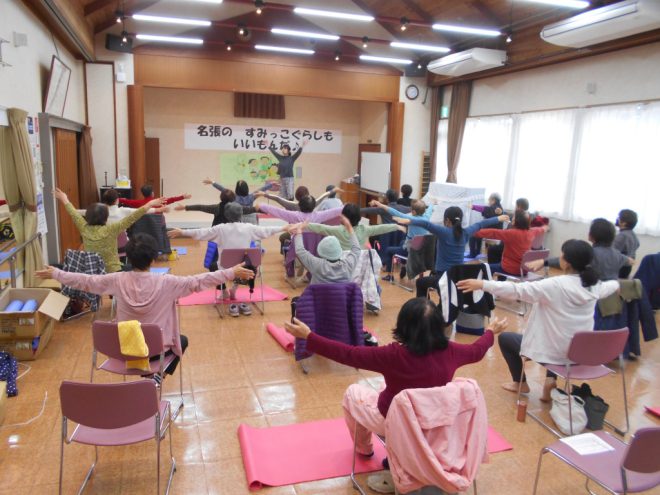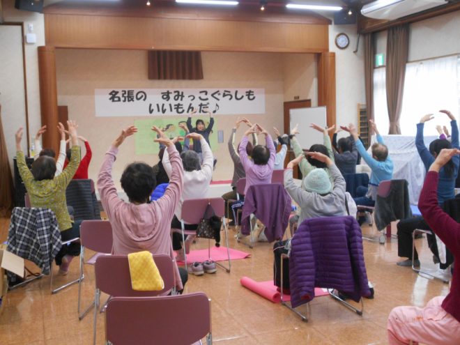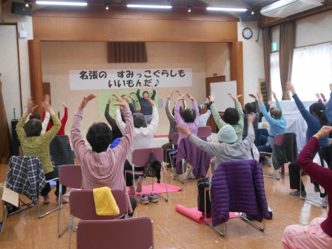 クリスマスソングに合わせ、先生の元気な掛け声のもと行うと50分ほどがあっという間、体もぽかぽかとしてきました。 最後は手や指の動きを取り入れた脳トレもありましたが、脚と腕それぞれ違う動きを同時に行うのでチェアバレトン自体も脳トレになっているそうです。