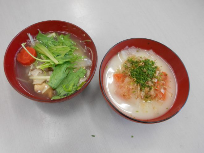 松村先生(香川県)と村松先生(福岡県)の地元のお雑煮の食べくらべです。