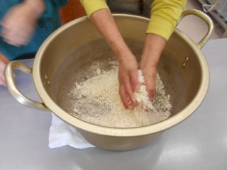 3月12日(木)恒例の味噌作り講習会を行いました。センター制作6名・自宅制作10名でした。今年度も愛農ネットさんのご尽力で大山田産無農薬の新物大豆を仕入れていただきました。麹は「土のか香工房」さんの麹を使用させていただいていましたが、昨今の米の高騰の影響で米麹の値上がりがかなり大きく、皆さんの負担も考慮しつつ今年度は愛農高校産の麹を使用させていただきました。(味噌作り当初はこちらの麹を使用)