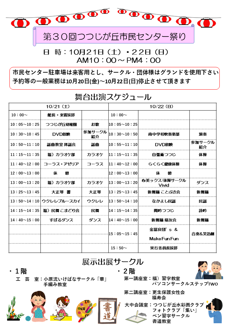 第30回つつじが丘市民センター祭りのご案内